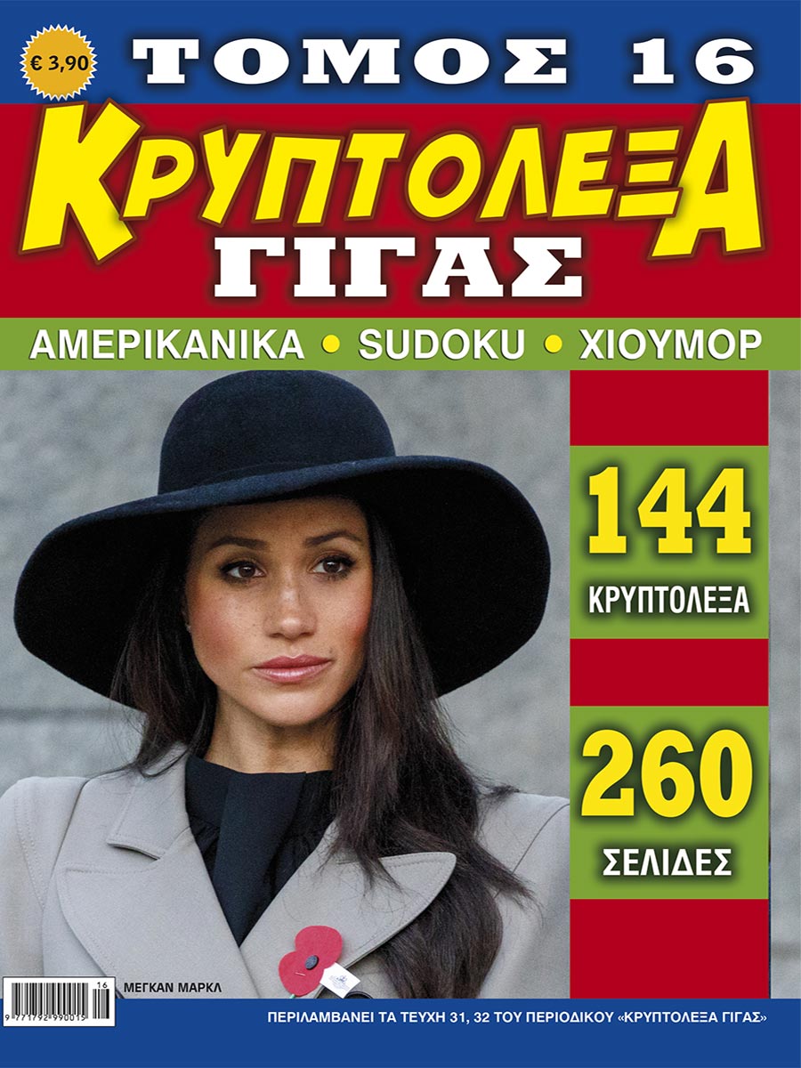Το αγαπημένο σας περιοδικό “Κρυπτόλεξα Γίγας” κυκλοφορεί και σε τόμο για περισσότερες στιγμές ψυχαγωγίας. 260 σελίδες, με 144 Κρυπτόλεξα και πληθώρα αμερικάνικων, σταυρολέξων, sudoku και παζλ περιμένουν τη λύση τους!