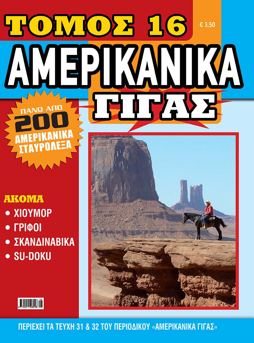 Αν είστε λάτρεις των Αμερικάνικων, τότε ο τόμος “Αμερικάνικα Γίγας” είναι η πιο συμφέρουσα επιλογή για εσάς. Πάνω από 200 Αμερικάνικα με ελληνικές λέξεις, περιμένουν τη λύση τους.