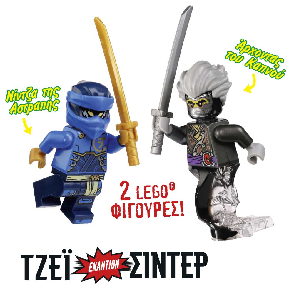 Μία μοναδική ειδική έκδοση για το LEGO ® NINJAGO ® με μοναδικά δώρα: φιγούρες Τζέι εναντίον Σίντερ. Επίσης, θα βρείτε φανταστικά παιχνίδια, αφιερώματα και κόμιξ.
