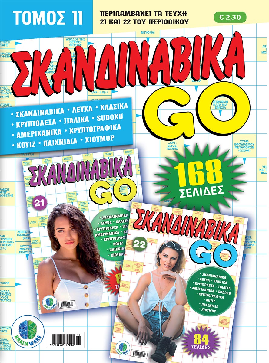 Τόμος του περιοδικού “Σκανδιναβικά Go”. Στις 168 σελίδες του θα βρείτε, όχι μόνο ενδιαφέροντα και πρωτότυπα σταυρόλεξα, αλλά και πληροφορίες για ιστορικά πρόσωπα, για θέματα που απασχόλησαν την κοινή γνώμη, αθλητικές ιστορίες, κουίζ, παιχνίδια και συμβουλές για την υγεία και την καθημερινή μας ζωή.